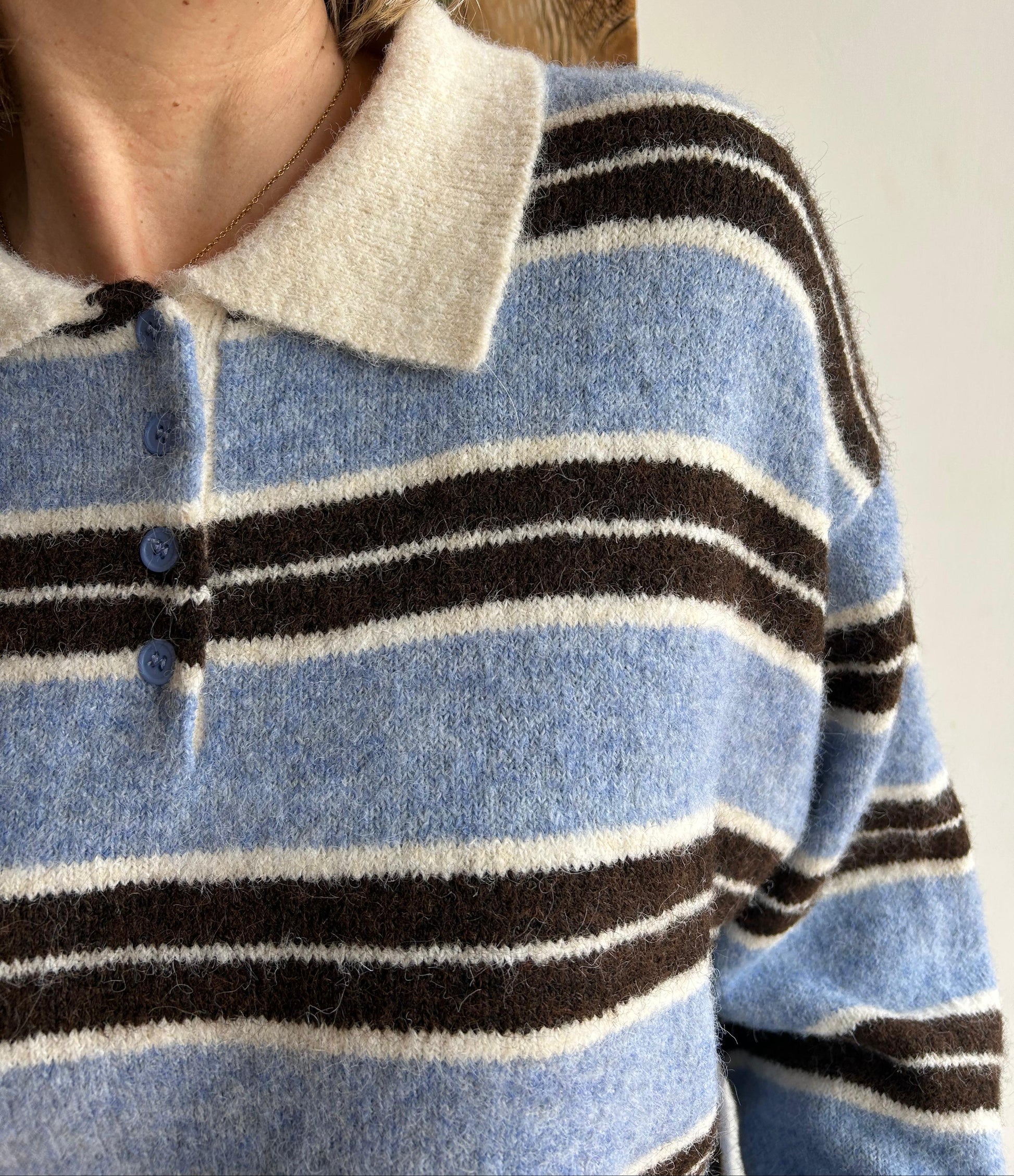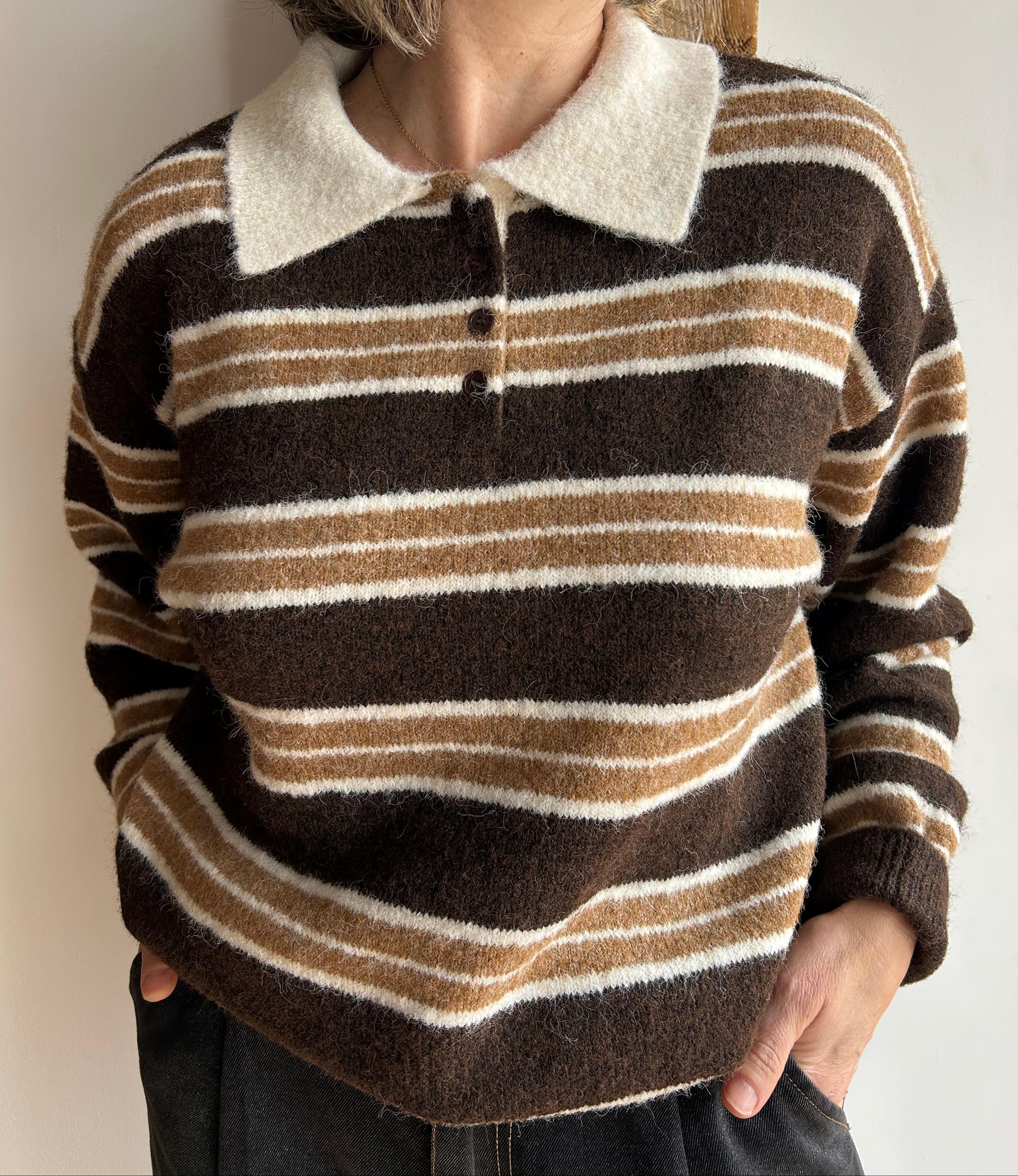 Jersei llana estil polo, coll amb solapes, disponible en dos colors.